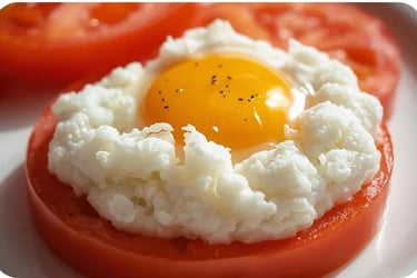 "Cloud Eggs" (Huevos Nube) sobre Tomate
